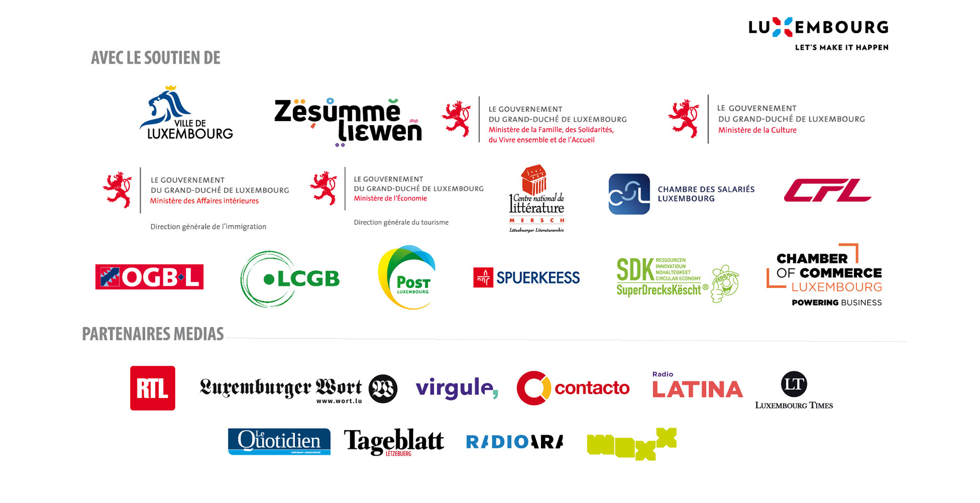 A.F.S.A.L.– Association des femmes de Santo-Antão au Luxembourg • A.L.C - Afghan-Lux community outreach • A.R.F. • AAFAL- Association Afrique Festival & Art de Luxembourg • ACSLUX - Association Capverdienne du Sud de Luxembourg • ACSMIL - Association culturelle et sportive macédonienne ILINDEN à Luxembourg • ADIFEG-LUX, Association Djokèrè Indhan des Femmes Guinéennes du Luxembourg • Administration communale de la Ville de Luxembourg • ADR - Alternativ Demokratesch Reformpartei • AEL - Association Ethiopienne au Luxembourg • African Luxembourg Community • AFRIKA LUX • Afrilanthropy • Agence immobilière sociale • ALAN - Maladies Rares Luxembourg • ALDIC - Association Luxembourgeoise pour le Dialogue Interculturel • ALEDE ARIAS - LUXEMBOURG MONDE • Alfityanu Humanitaire International • ALGL - Associaçao Luso-Guineense no Luxemburgo • ALKITAB; AMAL - Association musulmane Ahmadiyya à Luxembourg • Ami Ku Nhôs • Amicale des Francais à Luxembourg • Amigos de Mano a Mano Bolivia-Luxemburgo • Amigos Emigrantes • Amnesty International Luxembourg • ANPI-Luxembourg - Associazione Nazionale Partigiani d’Italia - Luxembourg • APSA - Association Portugaise solidaire des artisans • Arbëria, Association des Albanais au Luxembourg • ARC - Associazione Regionale Campani in Lussemburgo • ARCALUX - Association des Ressortissants Centrafricains du Grand-Duché de Luxembourg • Artemysia Théâtre • ASNC- Association de soutien aux nouveaux citoyens • Association Alto Mira - Lux • Association Coeur Vert - Luxembourg • Association des Egyptiens au Luxembourg • Association des émigrés de Tame • Association des femmes bosniaques au Luxembourg • Association des fils des descendants et des amis de Canhobe - Luxembourg • Association des maliens et sympathisants du Luxembourg “BENKADI” • Association des originaires de QingTian au Luxembourg • Association guinéenne de Cabienque au Luxembourg • Association Humanitaire Pour les droits de l’Homme et la Démocratie en Iran • Association KUNA’A Association Luxembourg-Lettonie • Association São Vicente • Association Scalabrini • ASTI - Association de Soutien aux Travailleurs Immigrés •