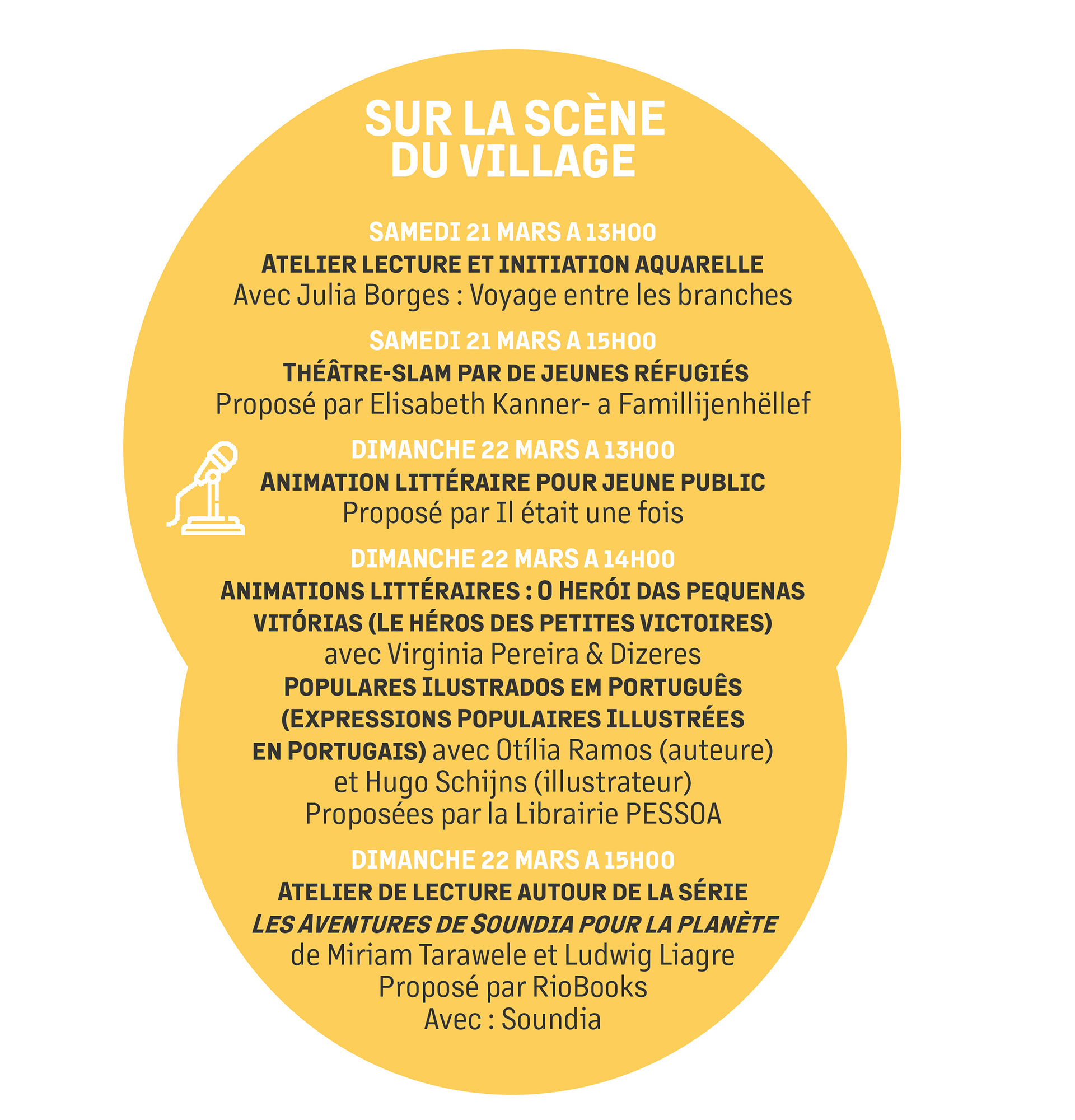 DIMANCHE : Heem? de Maëlle Gengler, D'Kand dat ze vill war de Jean-Christophe Peters, Gbongo de Shade Cumini. De 16h30 à 17h30, conversation avec Shade Cumini.