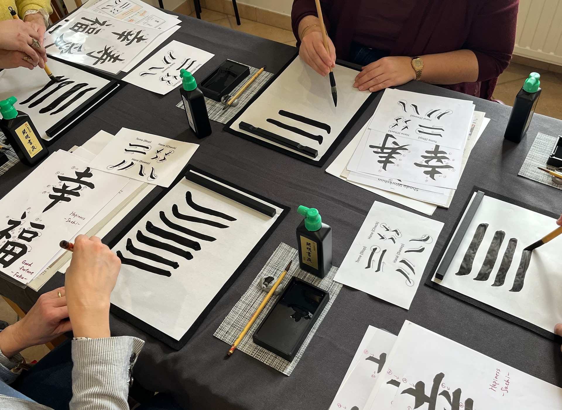 Des démonstrations seront réalisées par une maîtresse de calligraphie sur une grande feuille, suivies d’ateliers participatifs en nombre limité. Les participantes pourront apprendre à tenir le pinceau et expérimenter l’écriture de caractères japonais à l’encre traditionnelle.
